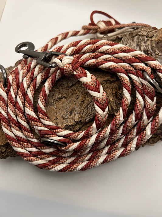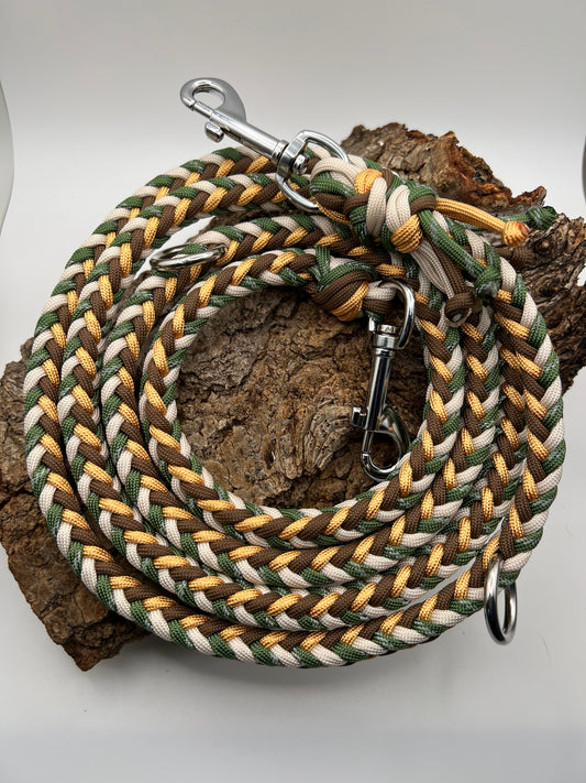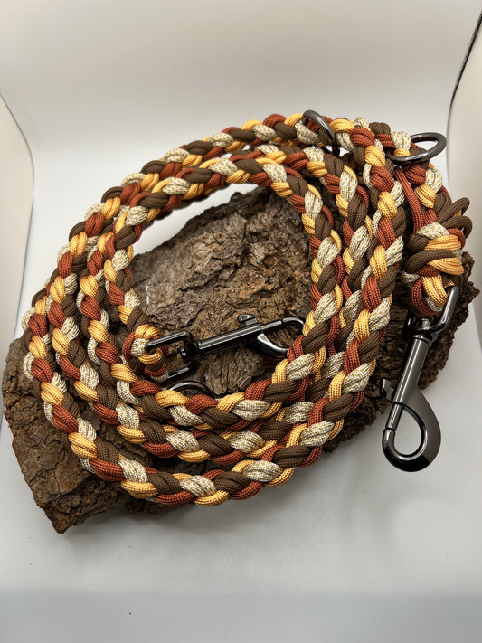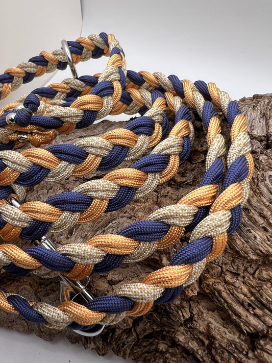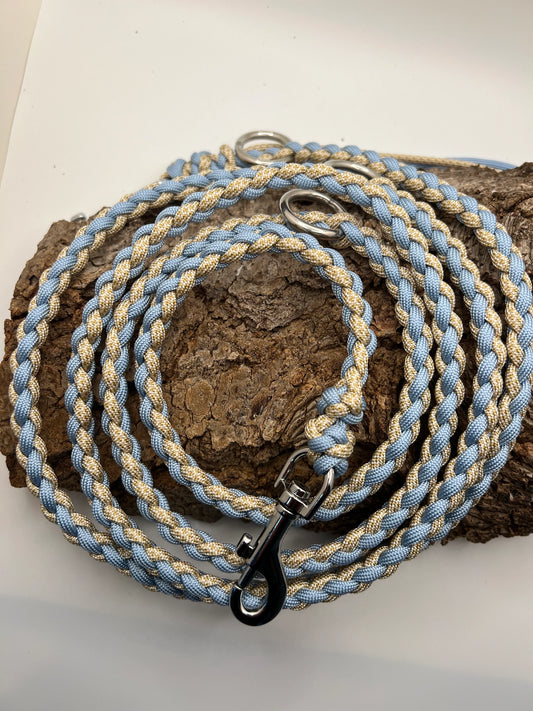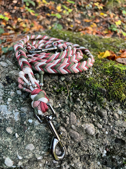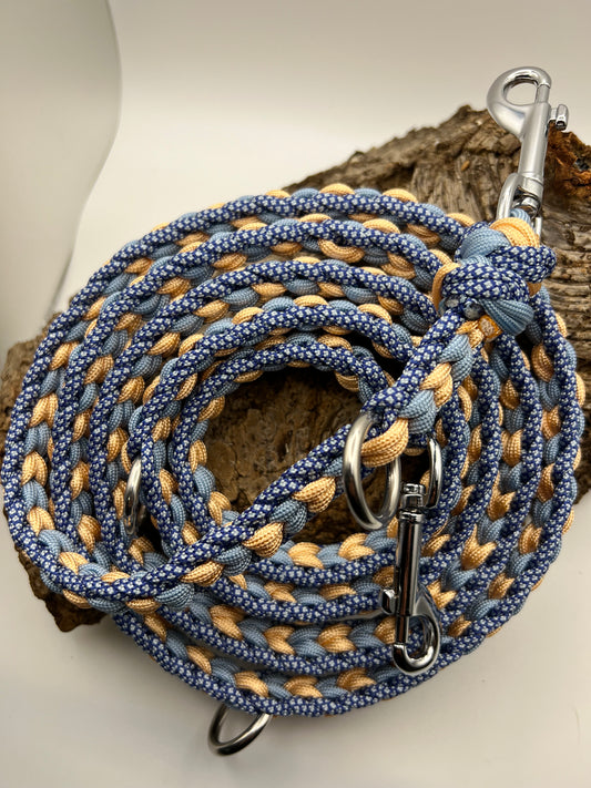 Du kannst dir deine Farben, Beschläge, Flechtmuster etc. selbst aussuchen und ich fertige die Leine dann ganz nach deinen Wünschen.