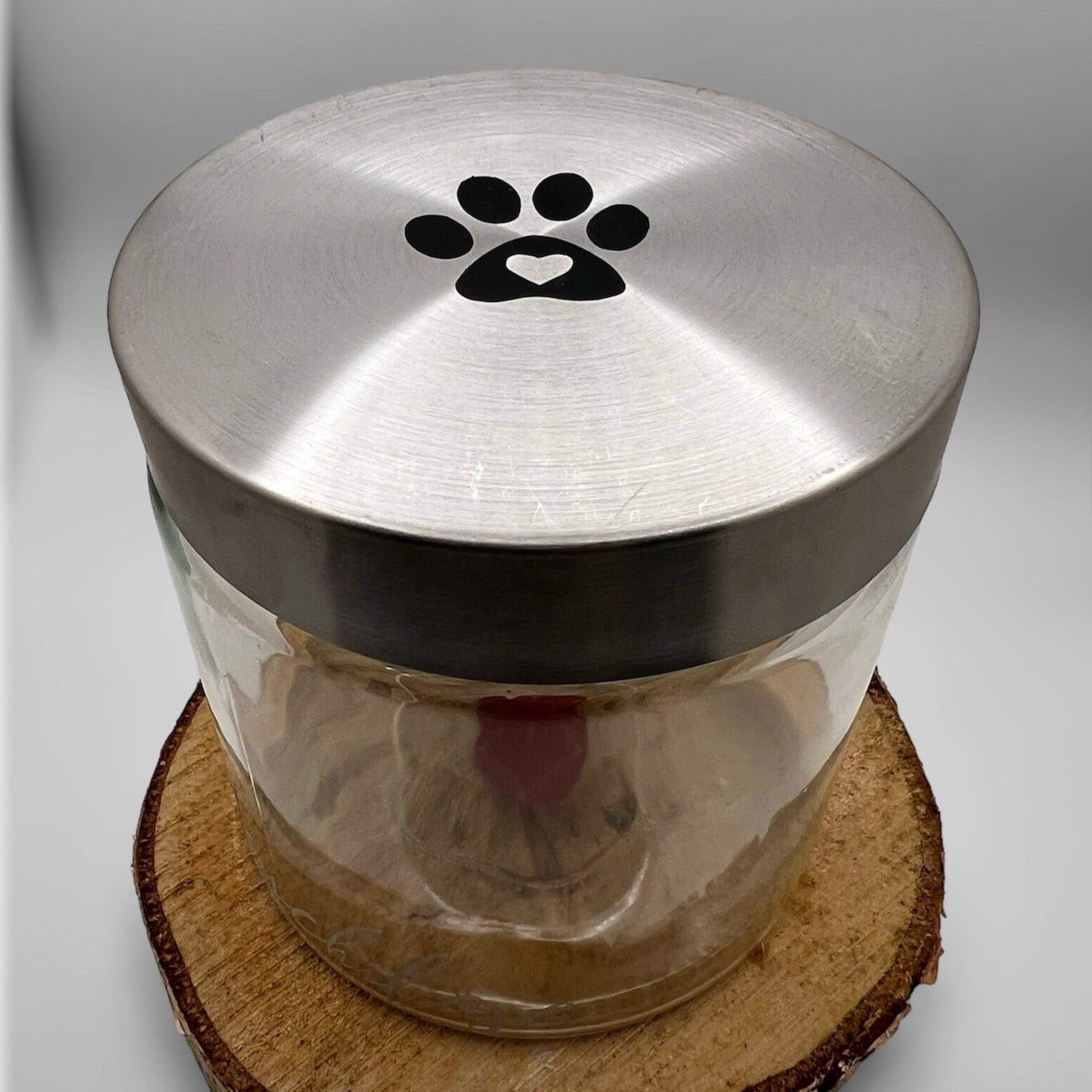 Die Naschdose - der perfekte Aufbewahrungsort für all die guten Leckerlis deines Hundes! Erhältlich in zwei Größen (0,8l und 1,1l) und mit praktischem Deckel, damit deine Leckerlis immer frisch und sicher aufbewahrt bleiben. Nie wieder trockene und langweilige Snacks für dein Haustier - mit der Naschdose bleiben sie immer lecker und knusprig! Zum Aufbewahren von Leckerlis, Kaustangen und weitere Snacks.